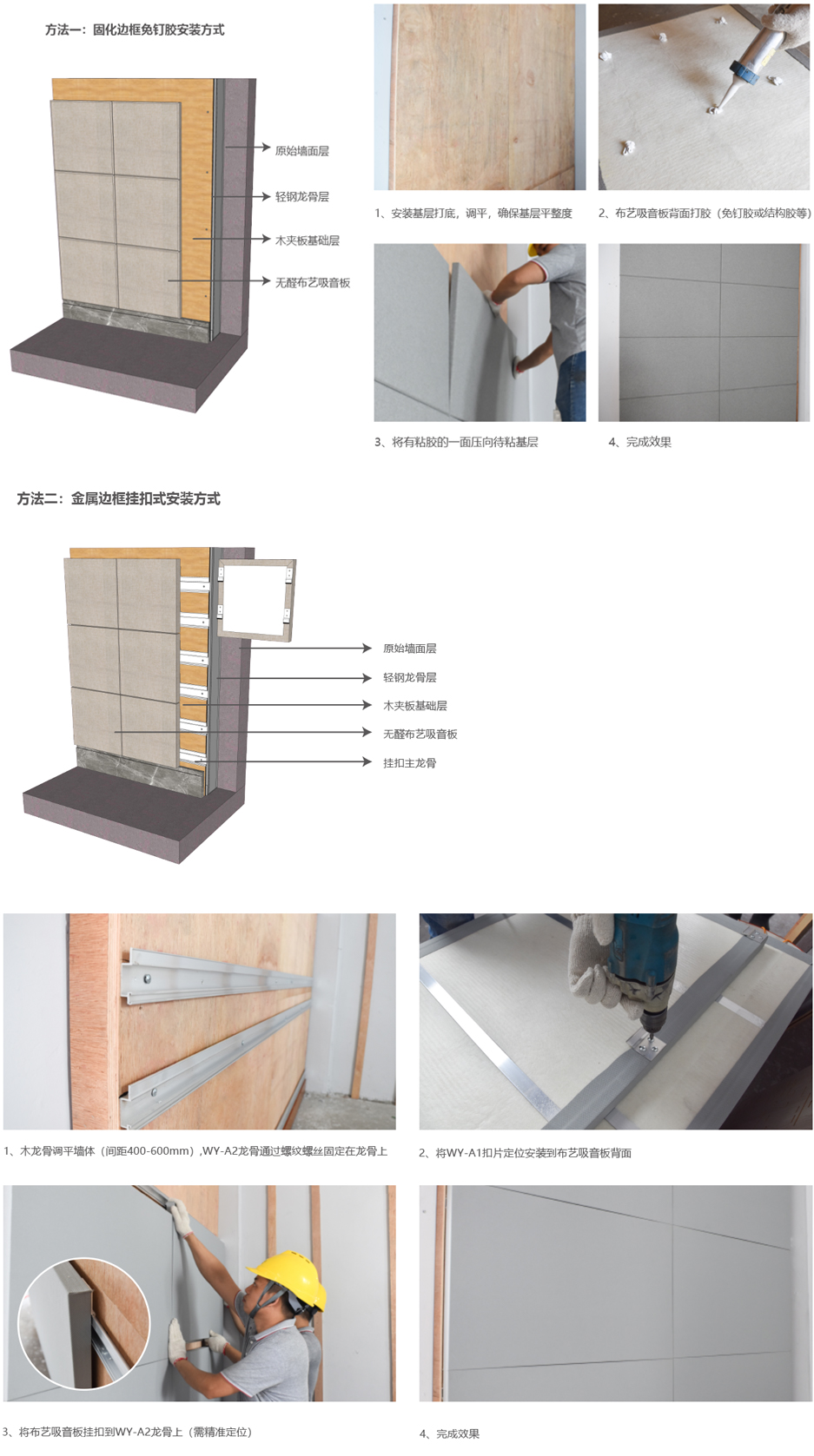 無醛布藝吸音板內置高密度白色環保聲學棉板,結構穩定,健康、安全、對人體友好;典型的多孔吸聲材料,全頻吸聲,用于墻板、天花板等可大量吸收房間內的聲能,降低混響時間、減少室內噪聲。 外包可選擇阻燃聲學布、A級防火玻纖布等,多品類、多顏色及多圖案,也接受客戶提供飾面材料;可定制固化技術邊框和高強度合金邊框結構,防火、環保、防潮及抗變形性能更優。