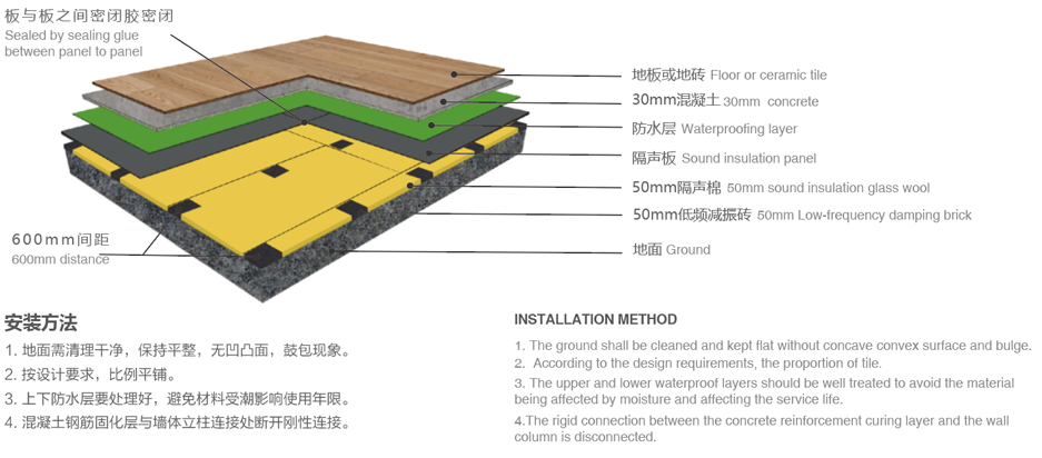 低頻減振磚LD-1由高彈性聚合物,經(jīng)過長時間高溫高壓加工而成。在壓力作用下,體積收縮小,回彈性極好,能有效阻斷聲橋的傳播,環(huán)保安全。