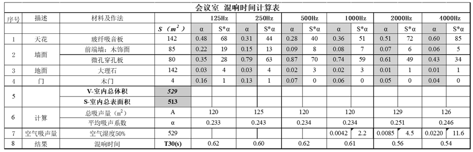 混響時間計算,通常要計算125、250、500、1000、2000、和、4000 Hz 六個頻段的值。