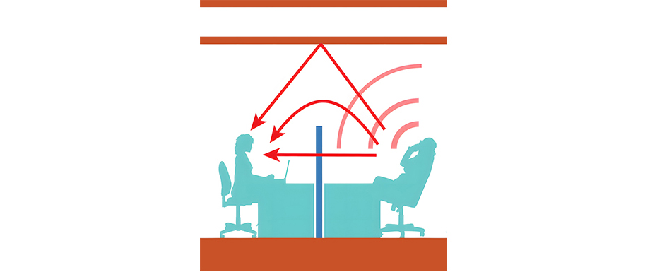 在開放式辦公室環境中,聲音傳播有三條典型路徑:
