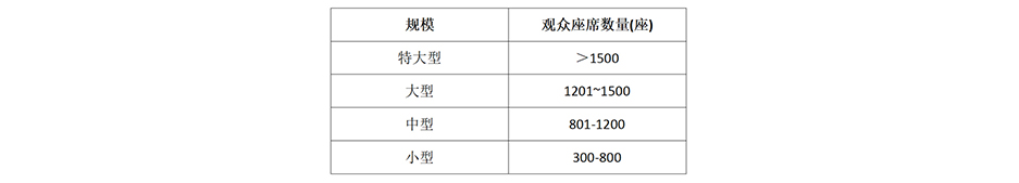 按規(guī)模分類:按我國的《劇場(chǎng)建筑設(shè)計(jì)規(guī)范》(JGJ57一2016)規(guī)定(包括歌劇院、多功能劇院和戲劇院),按規(guī)模(容座量)可分為:特大型(超過1500座)、大型(1201~1500座)、中型 (801~1200 座) 和小型 (300~800 座)等四類,同時(shí)還規(guī)定了每座有效容積的控制范圍,由此可求得觀眾廳的容積范圍。但對(duì)其他演藝建筑,如音樂廳、排練廳琴室等則沒有明確的規(guī)定。