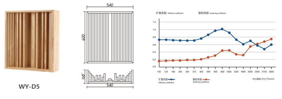聲學擴散體系列采用QRD擴散原理。QRD擴散論就是二次余數理論。基于二次余數理論經過計算不同深度踏步構成的擴散體,聲能進入不同深度的踏步,在不同的時間被逐漸地釋放。讓高峰和低谷更加平滑,因此構成一個更加平衡中立的聽音環境。