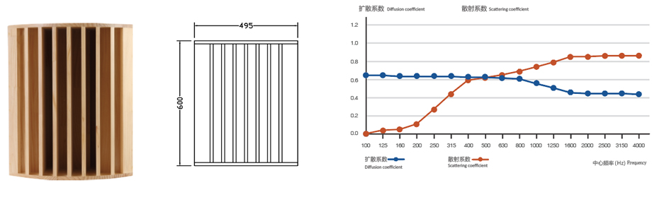 木質擴散體是一種不規則的平面設計,目的是在反射中產生擴散,它產生的聲音非常豐富而圓潤,混響聲似乎是從許多方向從側向、從頭頂以及從前方到達聽眾的,可顯著地改善廳堂的音質條件。